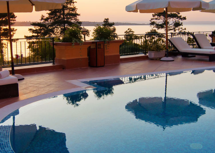 freshly power washed pool deck